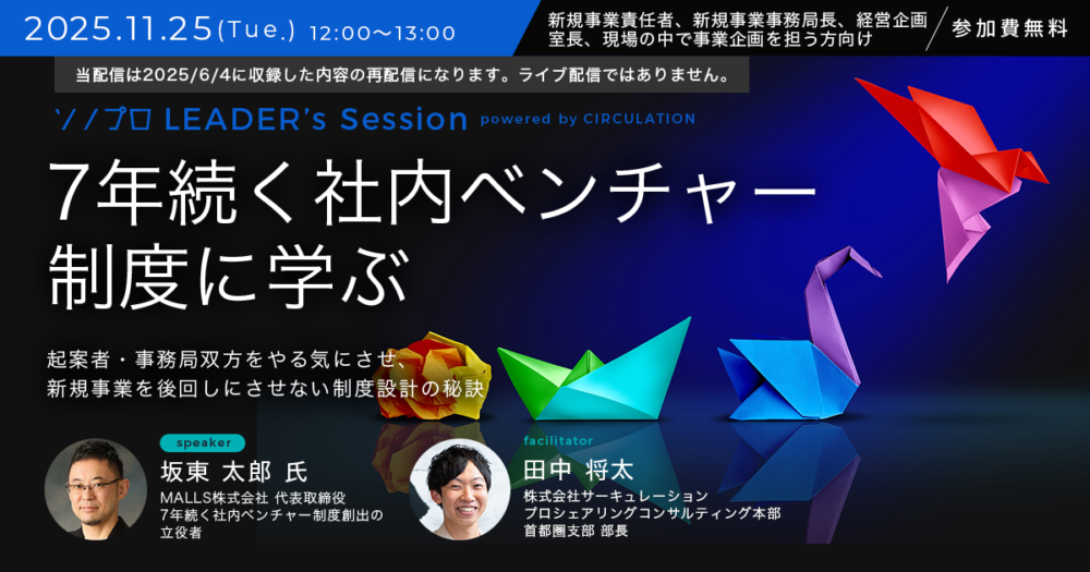 【新規事業を創出する仕組み創りと運営】大企業での制度創設・起業を経験したプロが語る、事業を生む制度設計の秘訣