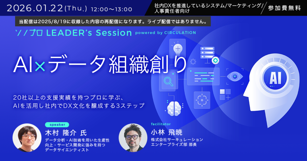 当日は、木村氏の実戦知をもとに、AIを活用し社内でDX文化を醸成する秘訣をお話しいただきます。