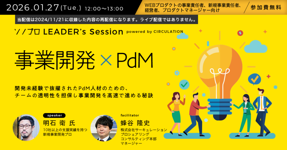 そのような皆様に「事業開発×PdM」をテーマにしたウェビナーを再放送いたします。